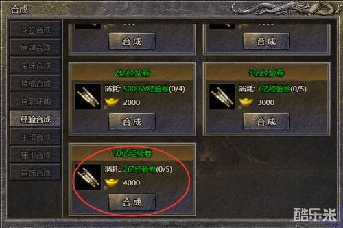 《熱血封神》中的【合成】系統(tǒng)并不僅僅只能單純的合成我們上面所說到的通用型裝備,通過這個(gè)系統(tǒng),玩家甚至能夠合成如官職、經(jīng)驗(yàn)這種與角色成長息息相關(guān)的消耗類道具。比如在經(jīng)驗(yàn)合成中,玩家最高更是能合成“10億經(jīng)驗(yàn)卷”!當(dāng)然,所需要的消耗材料以及低階經(jīng)驗(yàn)卷等,只需要通過打怪就能夠輕松獲得。