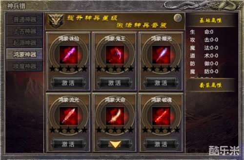 除了我們上面說到的“妖魔志”以外,“神兵譜”也同樣如此。包括普通、上古、起源、鴻蒙、喚魔等5個類別,當(dāng)玩家獲得指定神器、或?qū)⑸衿鲿x級至相應(yīng)階段時,即可點(diǎn)亮對應(yīng)的神器圖譜,并基于玩家當(dāng)前的屬性來提供額外的基礎(chǔ)屬性。而當(dāng)玩家同時點(diǎn)亮某個類別中的所有神器圖譜時,還將獲得額外的套裝屬性加成。