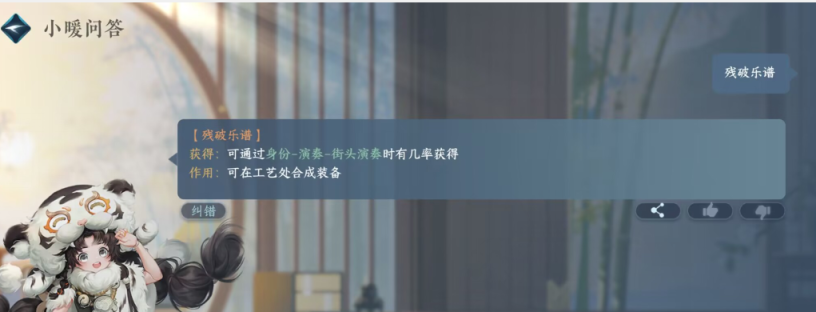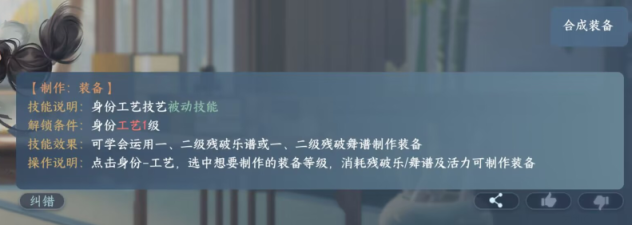 技能效果:可學(xué)會運(yùn)用一、二級殘破樂譜或一、二級殘破舞譜制作裝備。
