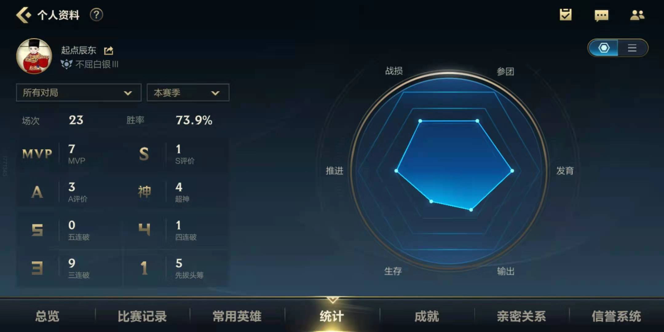 3、勝率高,表現(xiàn)分低,可能會(huì)被定位到白金。