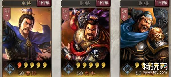 1. 緣分組合:曹操+典韋+許褚(統(tǒng)御20)