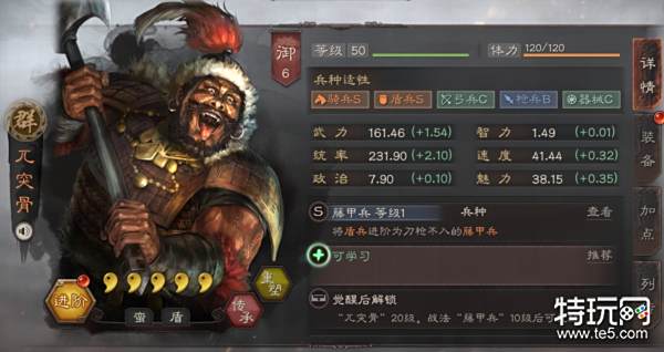 在三國志戰(zhàn)略版中,兀突骨是一位肉盾武將。在屬性成長上,兀突骨擁有高額的統(tǒng)率屬性成長,搭配兀突骨可以進階盾兵兵種讓盾兵部隊更加強力。在兵種上兀突骨有兩種S級兵種適性,推薦使用盾兵出戰(zhàn)最佳。